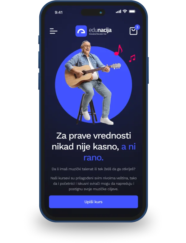 Platforma Edunacija je nastala iz potrebe da podignemo svest što većem broju ljudi o značaju bavljenja muzikom kao i da im pomognemo u tome. Ova platforma je namenjena isključivo onima od 7 do 107 godina koji imaju ambiciju da krenu sa muzičkom edukacijom, sviranjem nekog instrumenta ili unapređivanjem trenutnog znanja. Mi nismo tu da govorimo da smo najbolji, jedini i da samo kod nas treba da se obrazujete. Naravno da su veoma bitne muzičke škole, akademije, učenje od raznih majstora na svojim instrumentima itd. Naš cilj jeste da svi oni koji imaju želju da se bave muzikom, lakše im je da uče odakle hoće i kada imaju vremena, ili jednostavno svi oni koji nemaju u svojoj blizini druge opcije za muzičku edukaciju, ne ostanu uskraćeni za svoju dozu nota, akorada i melodija. Dakle da dopremo do svakog pojedinca koji hoće da se bavi muzikom i da muzički edukujemo naciju jer ko zna gde se krije sledeći virtuoz na nekom instrumentu.